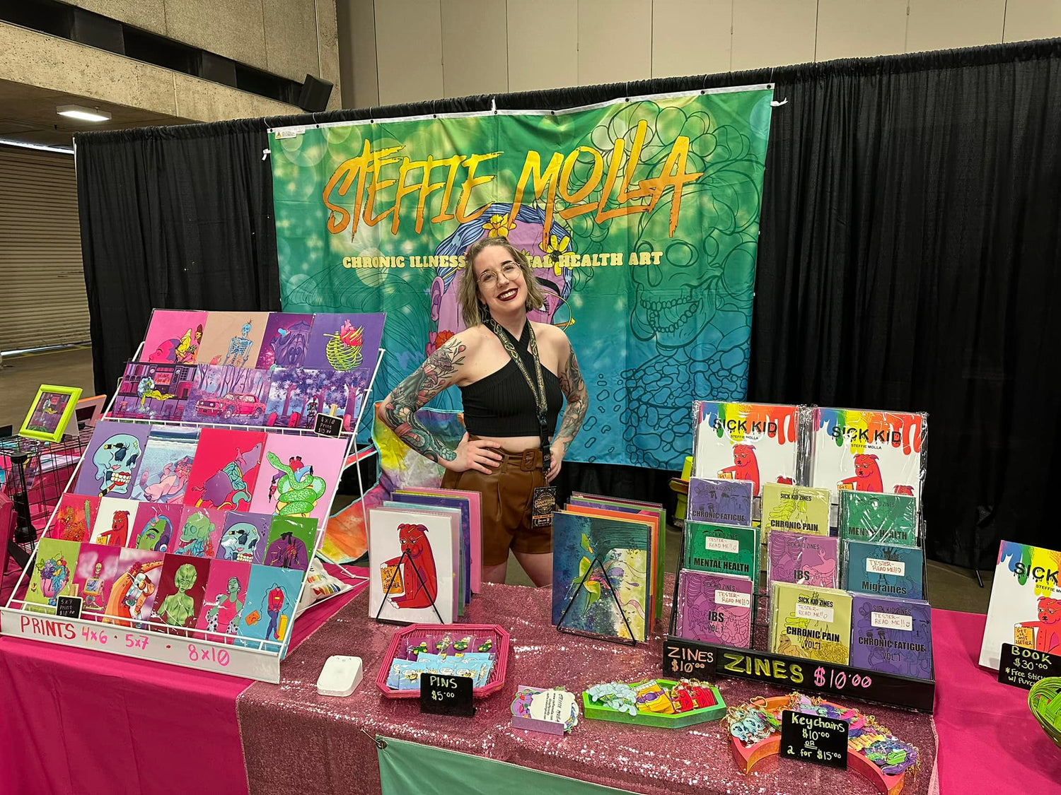 She has Lyme Disease, and was diagnosed in 2010. Her art is a whimsical approach to a topic that could be considered uncomfortable in order to make a connection to those who don’t have a chronic illness so they might understand some of the challenges faced by those who do.